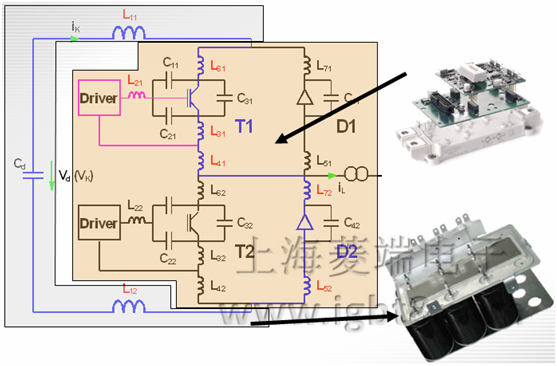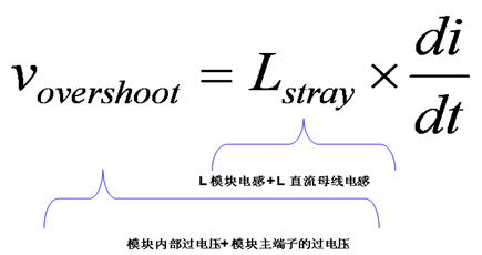 通過設(shè)計低電感的直流環(huán)節(jié)(較小的Lstray),可以使過電壓顯著減小。
